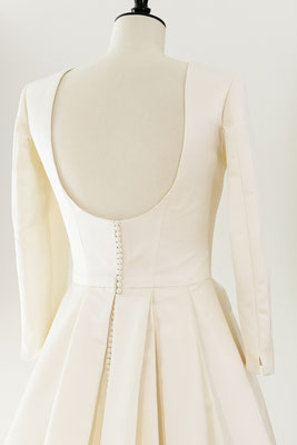 Whether your dream dress is short or long, choose from the finest fabrics available. Similar to the process of creating a full wedding dress, we will create a toile of the basic dress shape, before moving on to create the dress in the final fabric.